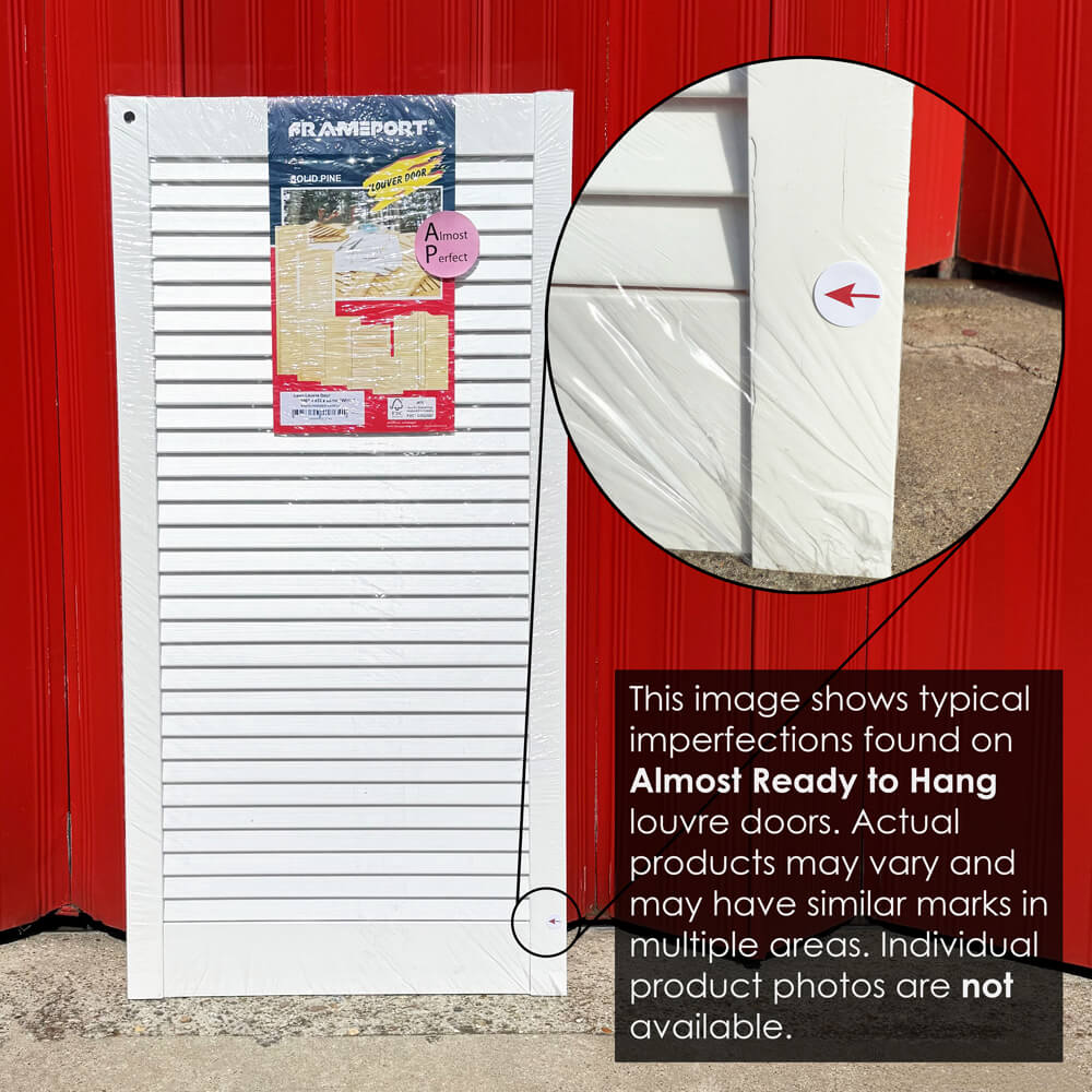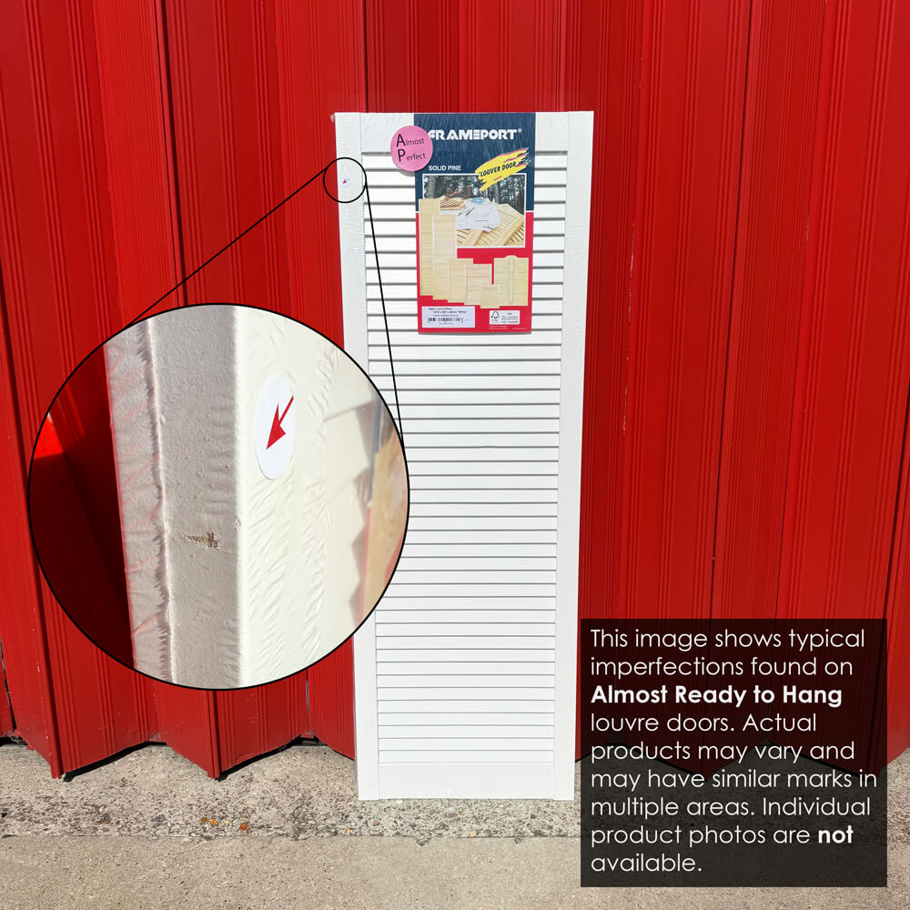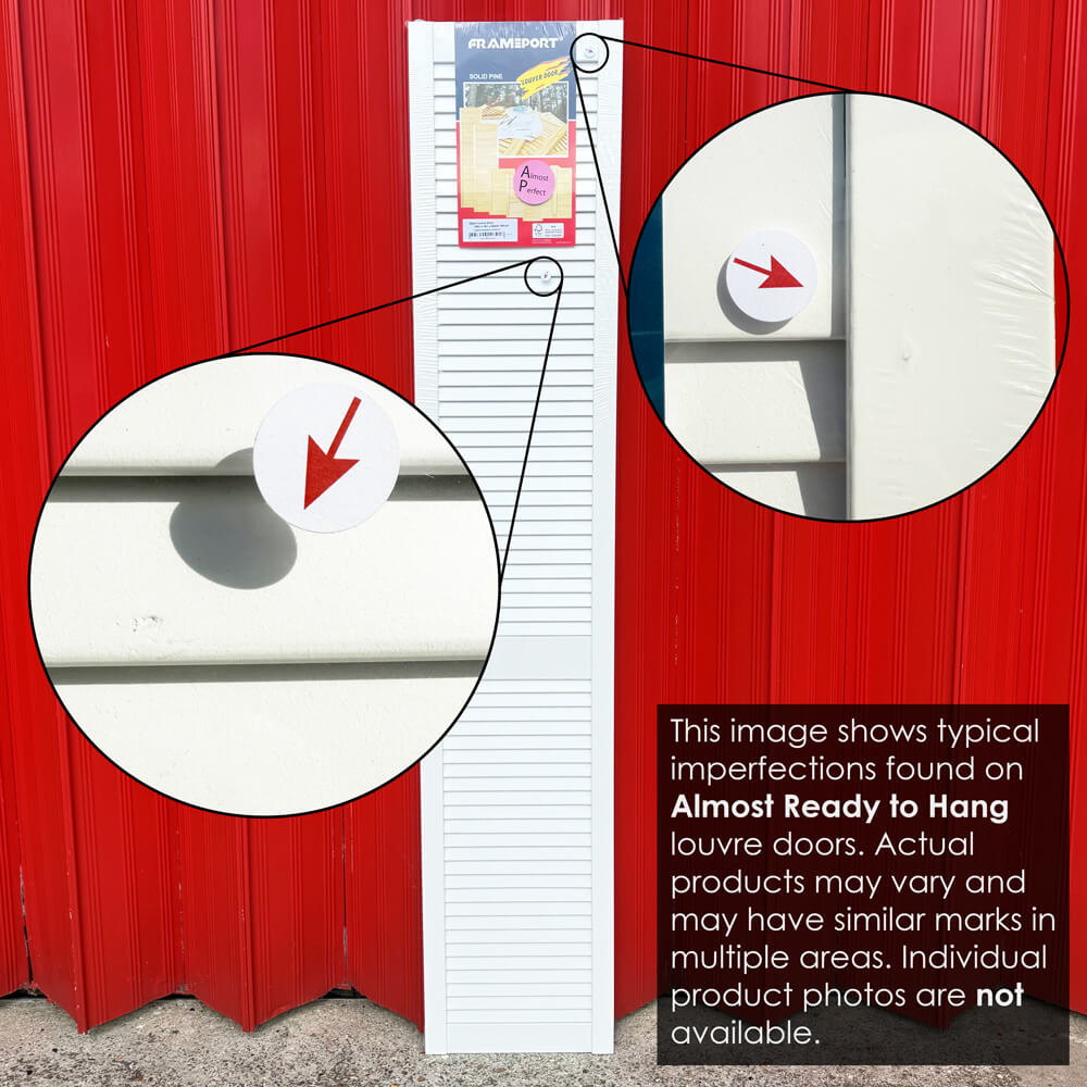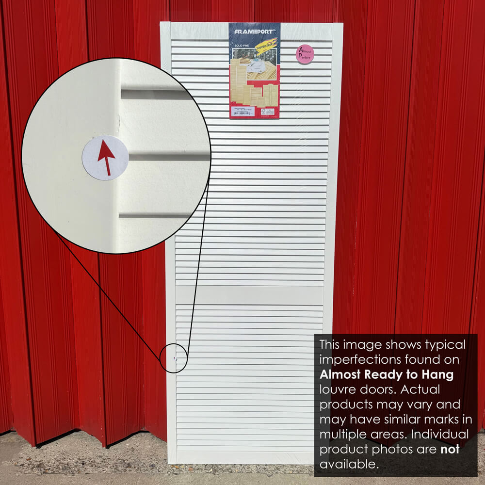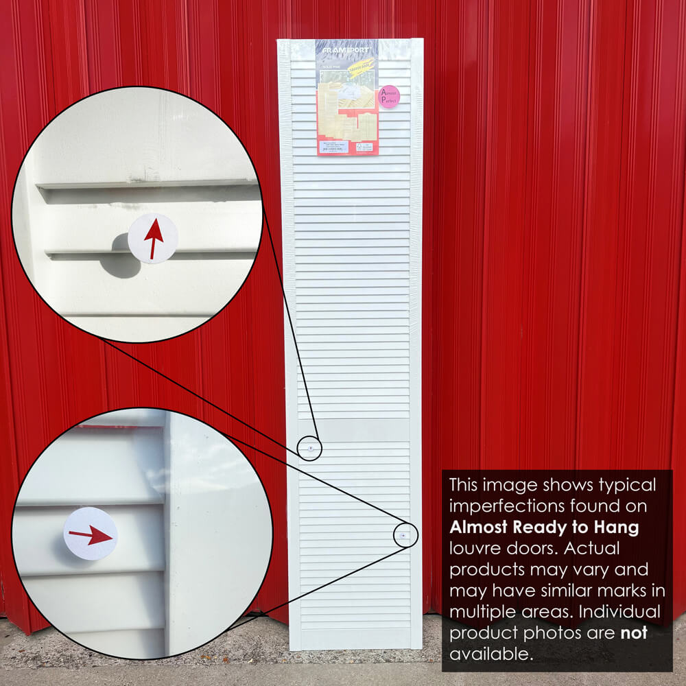 Almost Ready to Hang White louvre doors are an excellent choice at a discounted price. While they are close to perfect, minor blemishes in the woodwork or paint finish prevent them from meeting our standard grade.As a result, we have reduced the price by a generous 20%. These doors are sold as-is, meaning they do not qualify for our 14-day money-back guarantee, and all sales are final.