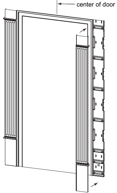 Unsnap the assembly and position the Pilaster Base 1/8" away from the sides of the door and 1/4" away from the bottom of the door. This should leave it 1/4" short from the top of the door. See figure at right.