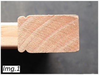 This stile has been cut and shaped from a solid piece of wood. Note the natural grain of the wood.